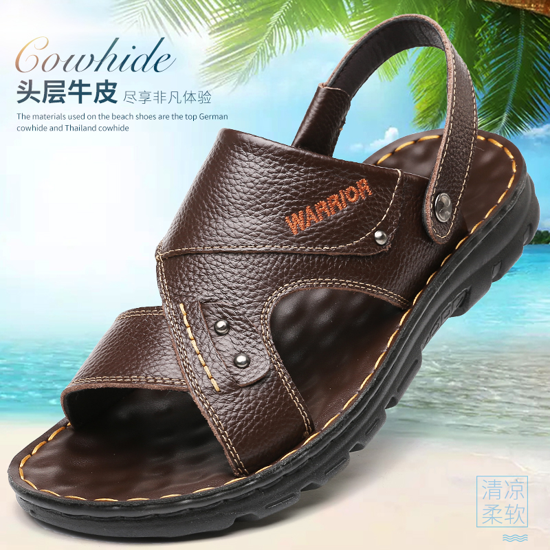Back Force Summer Sandals Boys Genuine Leather Casual Beach Shoes Trends 2020 New Outwear Dad Dual-use Sandals Men