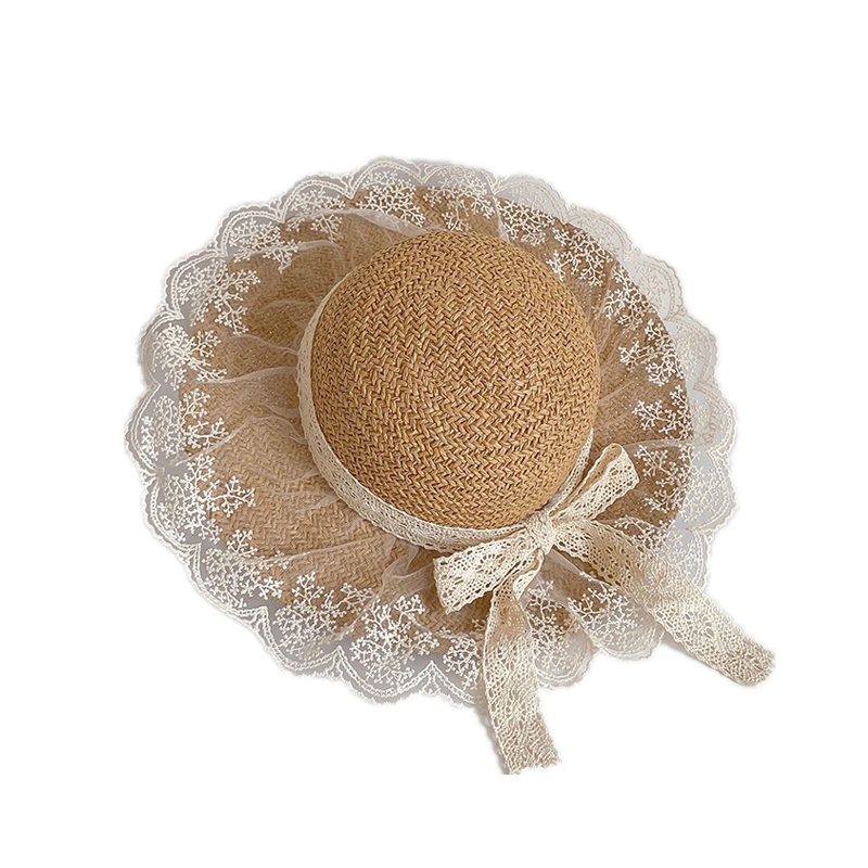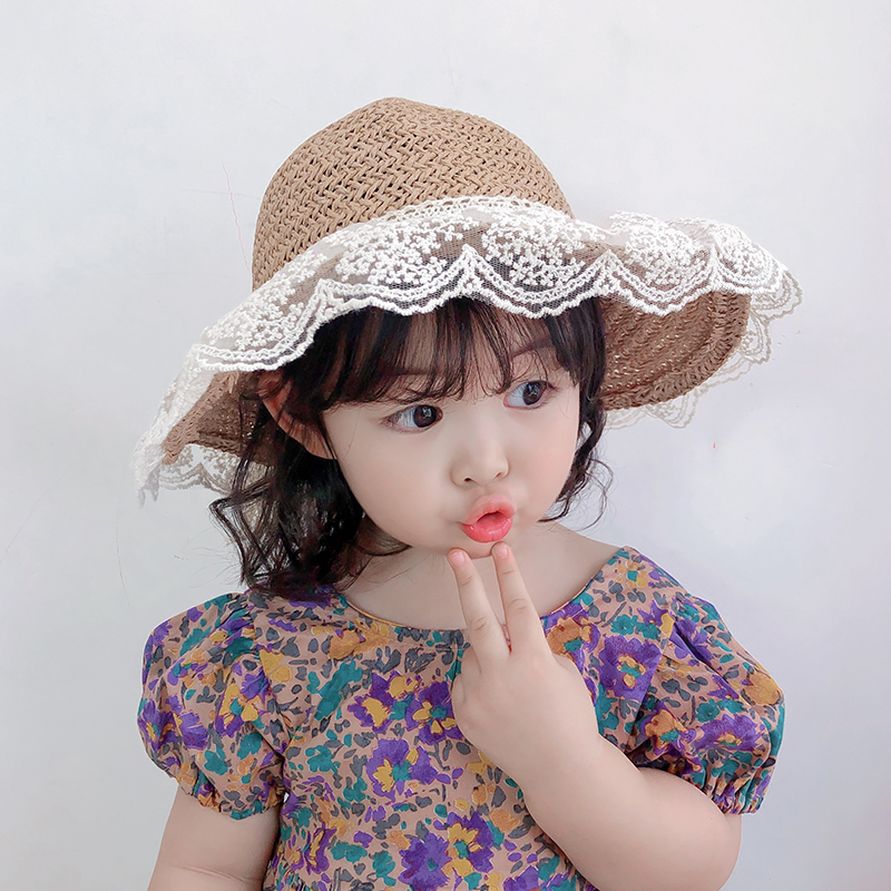 Children sunscreen hat peak summer sun-shading straw hat girl South Korean female baby polo lace lace beach hat
