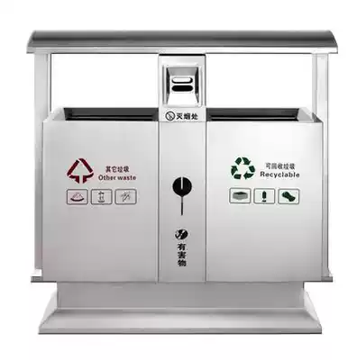 Outdoor stainless steel classification trash can Street road double trough outdoor community park municipal engineering environmental protection barrel