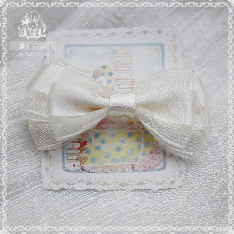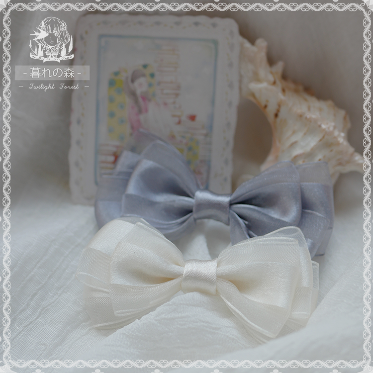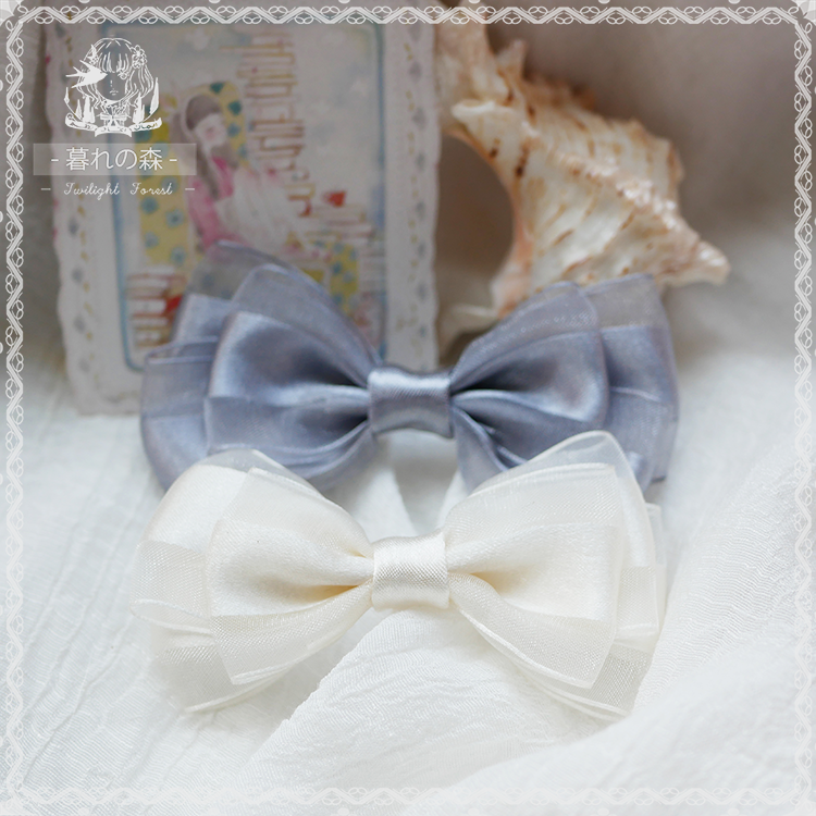 hairpin brooch original hand for Lolita hair accessories small things snow yarn silver gray rice white side clip butterfly knot customization