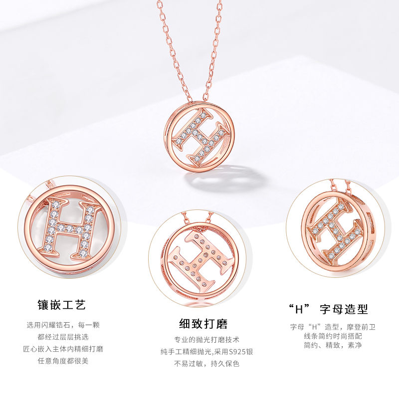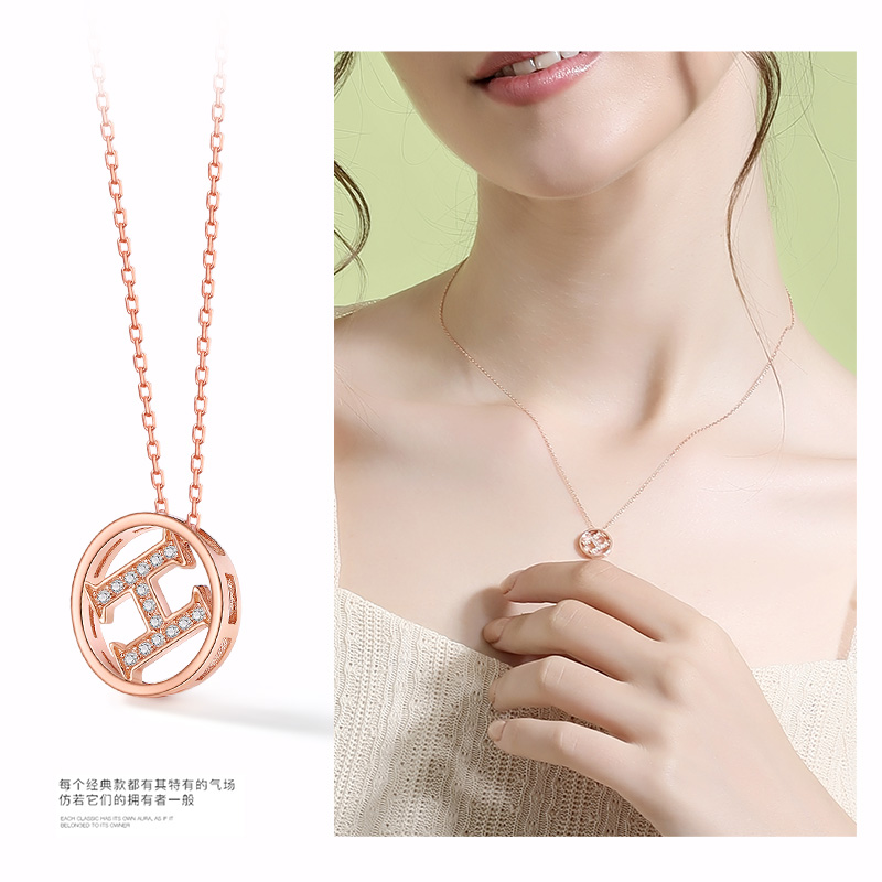 H letter necklace female summer sterling silver clavicle chain light luxury niche design 2022 new simple and versatile pendant