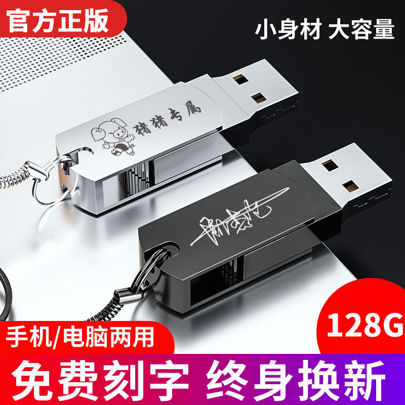 With the dishes 128g mobile phone computer dual-use large capacity type-c Xiaomi oppo high speed genuine male student waterproof student on-board USB with body disc gift office custom logo