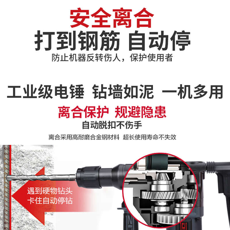 Electric hammer high power with clutch plug-in electric pituitary electric pituitary concrete impact drill electric pick triple-purpose industrial grade hammer drill