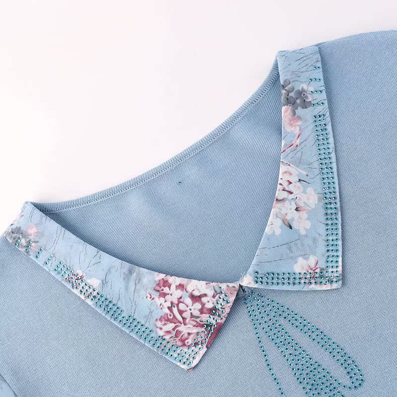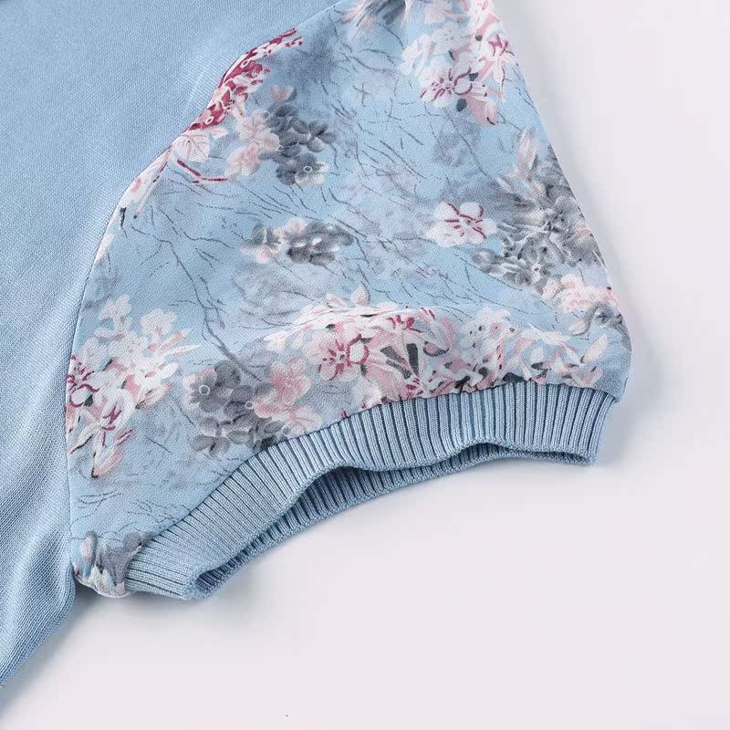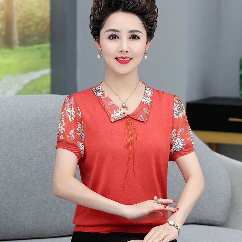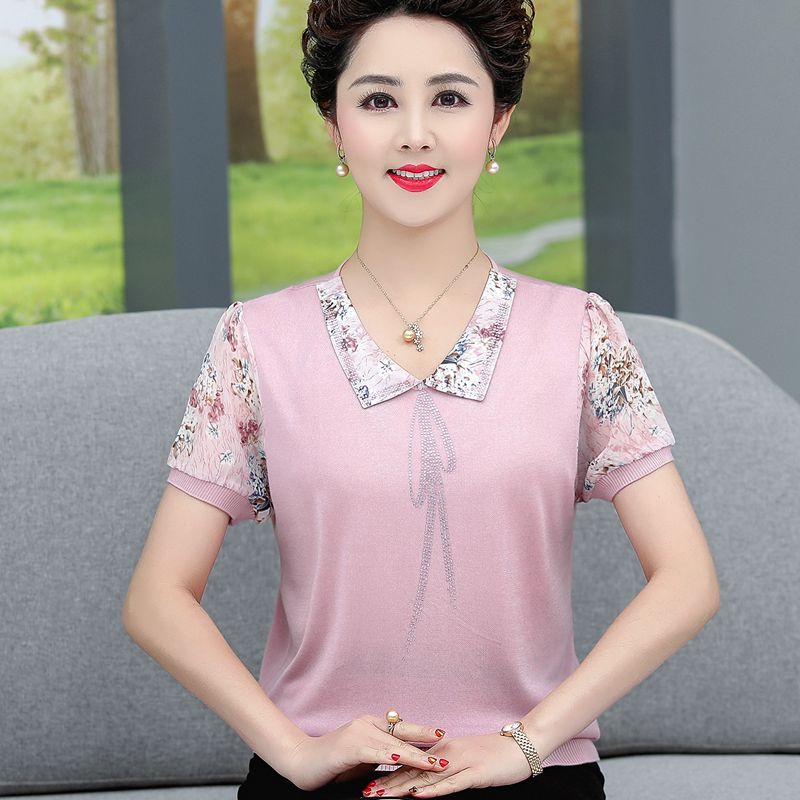 Mom short sleeve t-shirt woman turn in fashion middle age summer dress yarn sleeveless sweatshirt 50 years old age loose large size blouse
