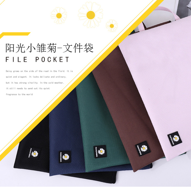 This star little daisy A4 net red document bag Female girl heart ins thickened waterproof Oxford cloth tote bag Briefcase Large capacity student zipper book bag File storage information bag