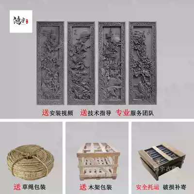 Self-produced and sold Chinese antique new brick carving plum orchid bamboo chrysanthemum blue brick relief shadow back wall Wall Wall decorative hanging