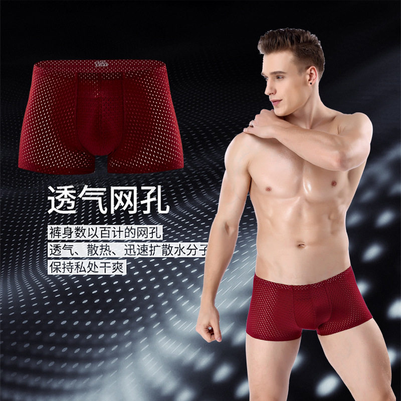 Underwear men's ice silk seamless boxer pants summer pants men's personality large size breathable ultra-thin youth boxer pants Sao