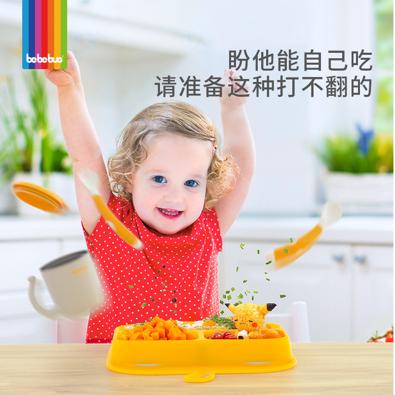 BeBeBus baby dinner plate suction cup bowl divided plate cartoon silicone anti-fall non-staple food bowl baby tableware
