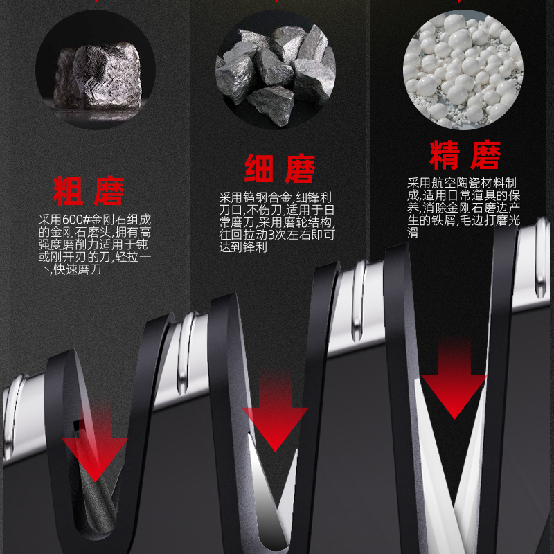 Upgrading the three-section sharpeners (indelible scissors) (German craftsmanship) upgrading the four-section knife sharpening machine (knife-cut dual-use) (German craftsmanship) Strengthening the five-in-one-four-section style (knife cut open bottle for three purposes)