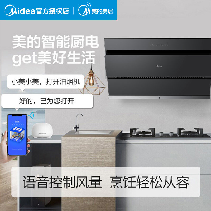 Midea range hood gas stove package Household smart home appliance smoke machine tool combination Side suction kitchen set