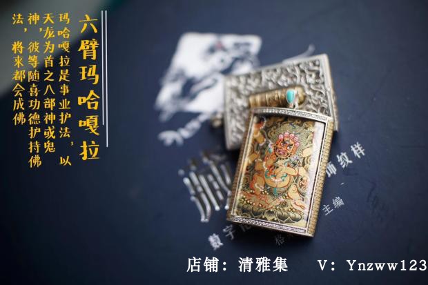 Qinghai Zhegon pure silver hand painted Zakhiram with a small Donka pendant to attract chaetian god Maha Galalian Division