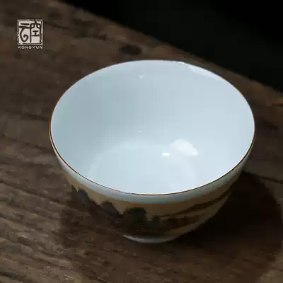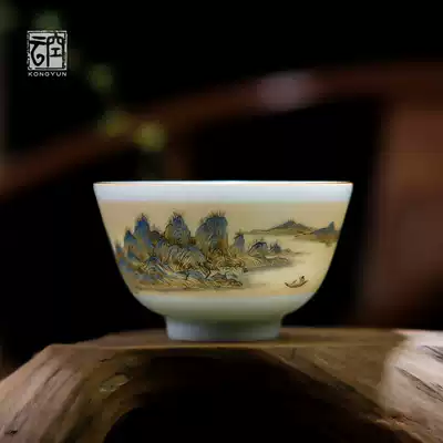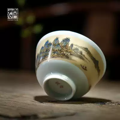 Kongyun Qianli Jiangshan map Master Cup Jingdezhen hand-painted picture scroll tea cup humanities landscape personal kung fu tea set