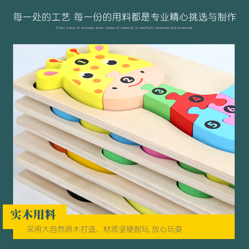 Wooden large three-dimensional puzzle 2-3-4 years old children's early education educational cognitive toy large particle digital puzzle