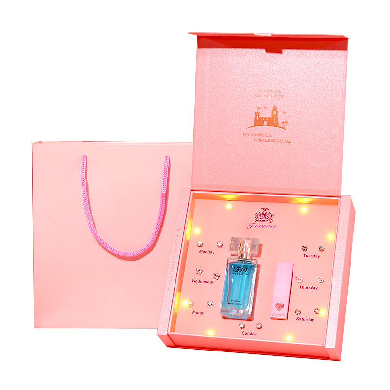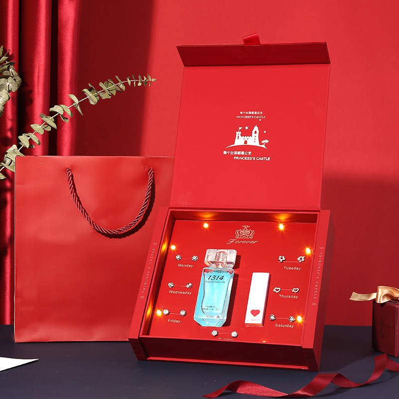(SF) Apple perfume one week ear needle automatic lighting music gift box (girl Powder) 1314 Perfume one week ear needle open cover lighting music gift box (flame red)131