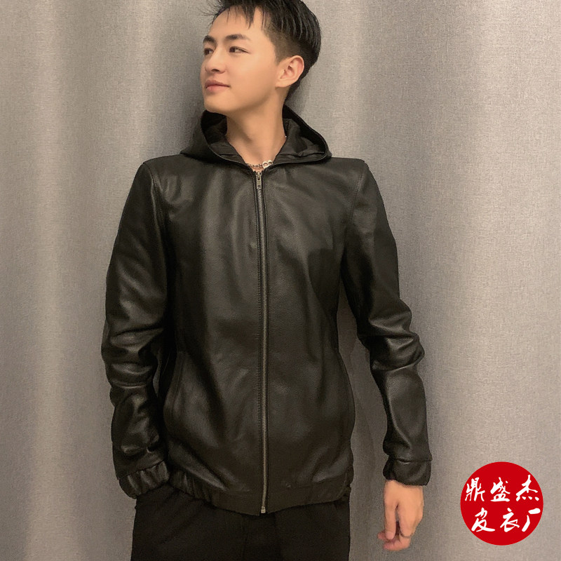 Imported Head Layer Cow Leather Casual Leather Jacket With Cap Dermis Leather Clothing Male Soft Bull Leather Minimalist Coat With Cap Repair