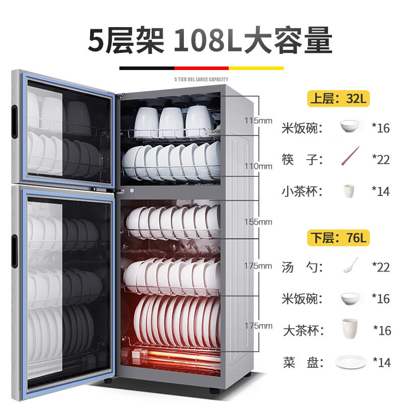 De Marsee Disinfection Cabinet Home Standing Small Sterilized Bowl Tray Cabinet High Temperature Bowls Chopsticks Cabinet double door 138A-1