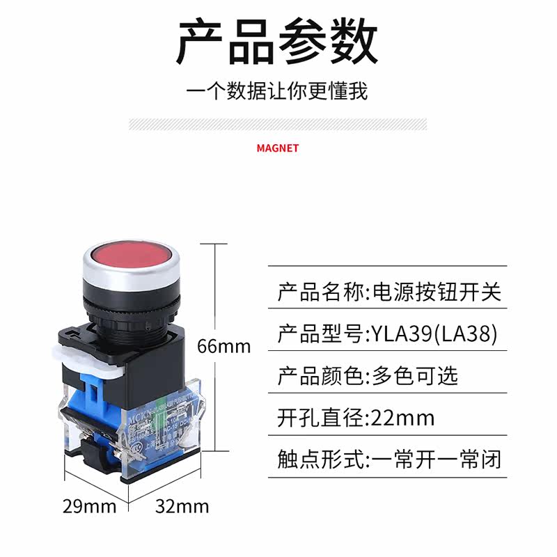 LA38-11 LA38-11 LA38-11BN button switch flat button reset type bore hole 22MM red green yellow blue white