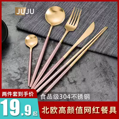 Nordic soup spoon home Korean long handle creative cute Net Red Western tableware three-piece set steak knife and fork chopsticks