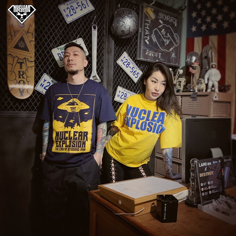 NE Nuclear Explosion Boomer robot oversize hip hop oversize Loose Pure Cotton Falling shoulder short sleeve male and female T-shirt