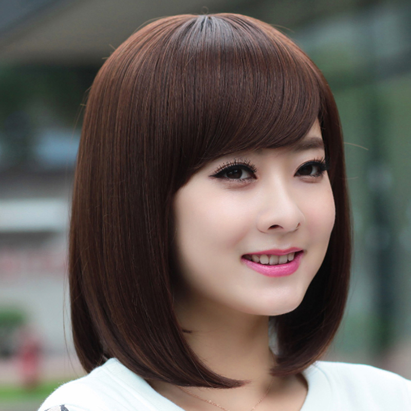 bobo head with long straight hair real hair headgear wig cover round face Inner buckle Popo hairstyle wig woman short hair pear flower head