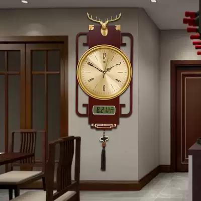 New Chinese clock wall clock Household living room simple fashion Chinese style creative Nordic atmosphere wall-mounted light luxury clock