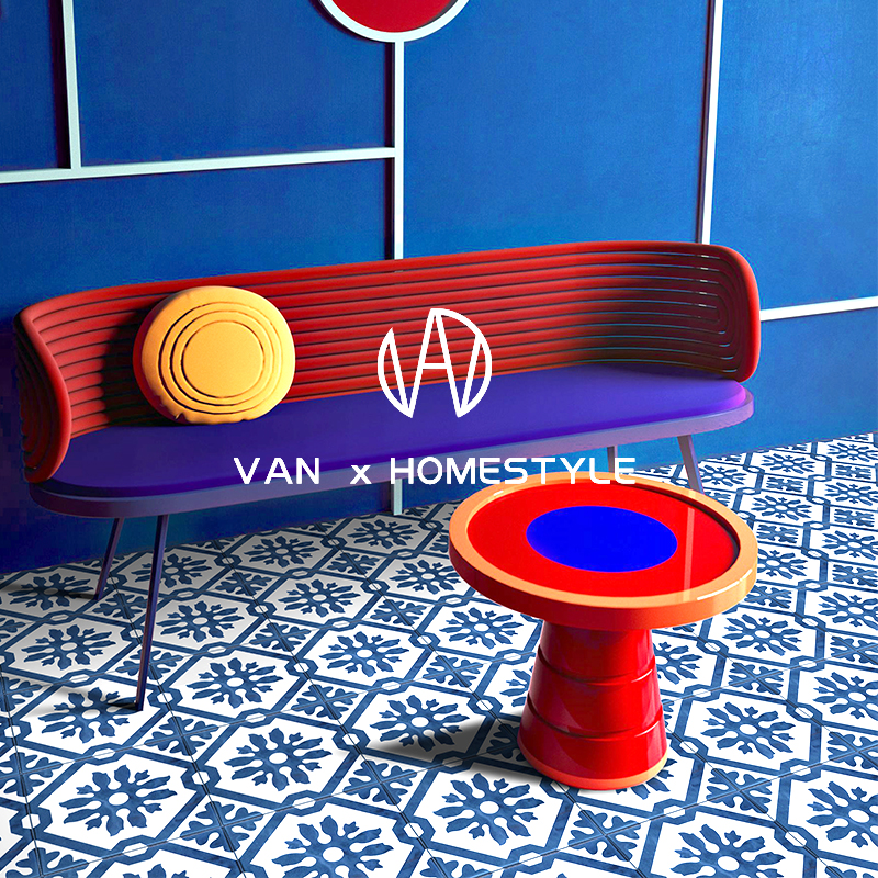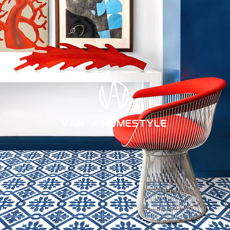 Van NeMediterranean Blue Small Flower Brick Kitchen Balcony Xuan Guan Wall Tile Makeup Room Bathroom Toilet Flower Leaf