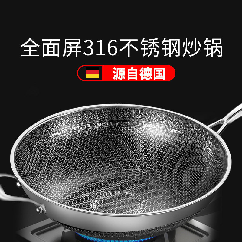 Germany Sast 316 stainless steel wok micro fume double-sided concentrator full screen honeycomb non-stick pan can be spatula