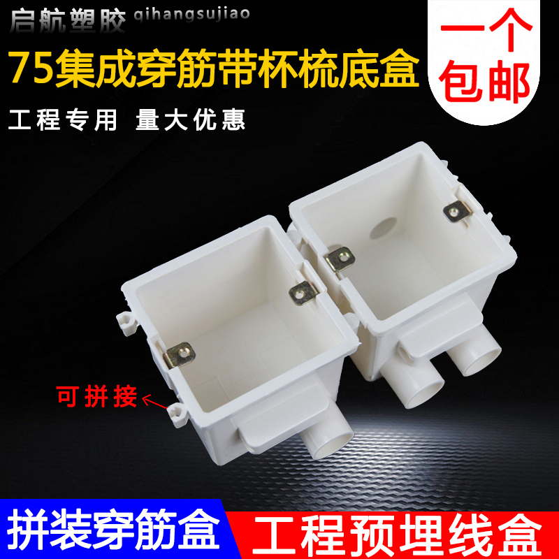 PVC flame retardant embedded engineering box 86 type 75 assembled through steel bar integrated box single hyperbolic three or four prongs 20 25 holes