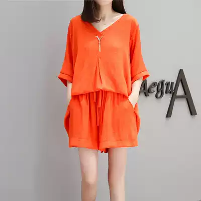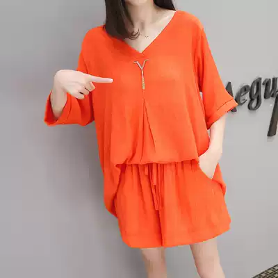 Micro fat mm thin two-piece suit large size women's new summer shorts fat sister foreign pie cover belly