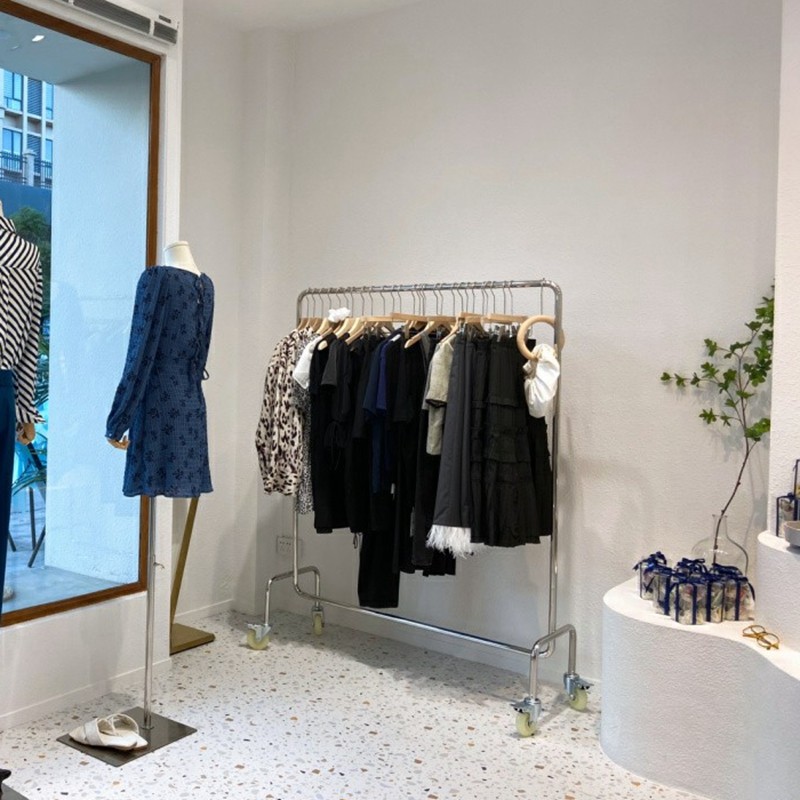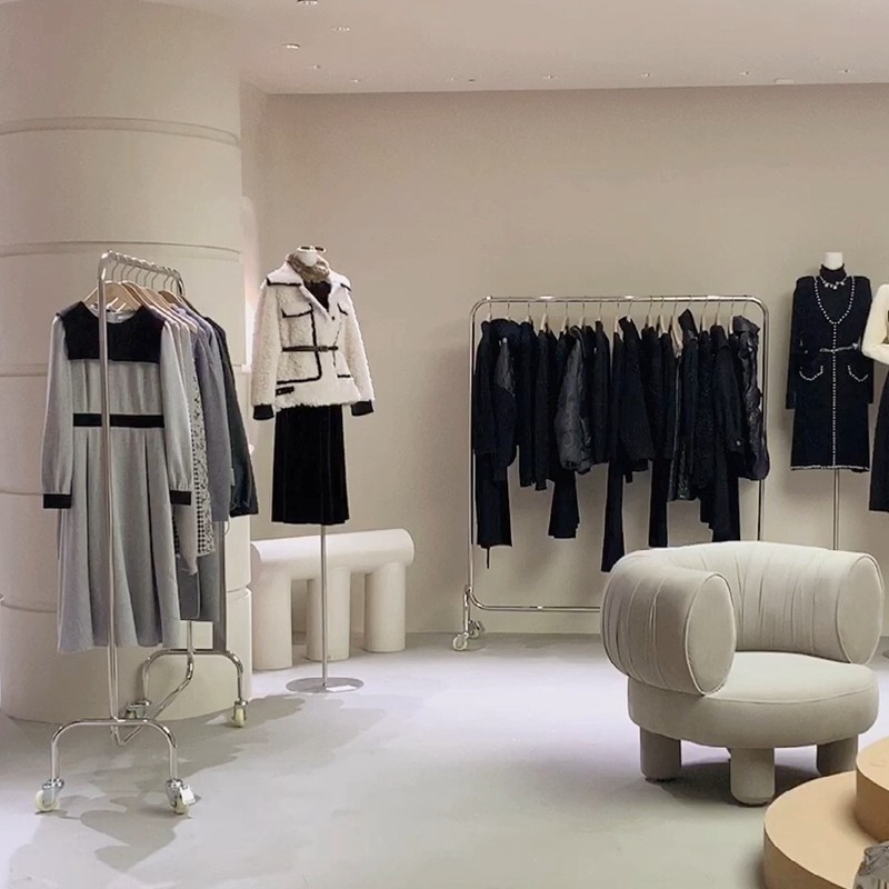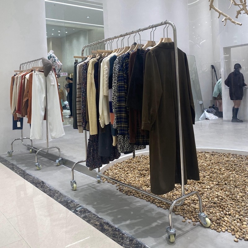 Clothing Store Show Shelves Landing Style Mobile Middle Island Clothes Hanger Stainless Steel Clothes Shelves Women's Clothing Store Display Props