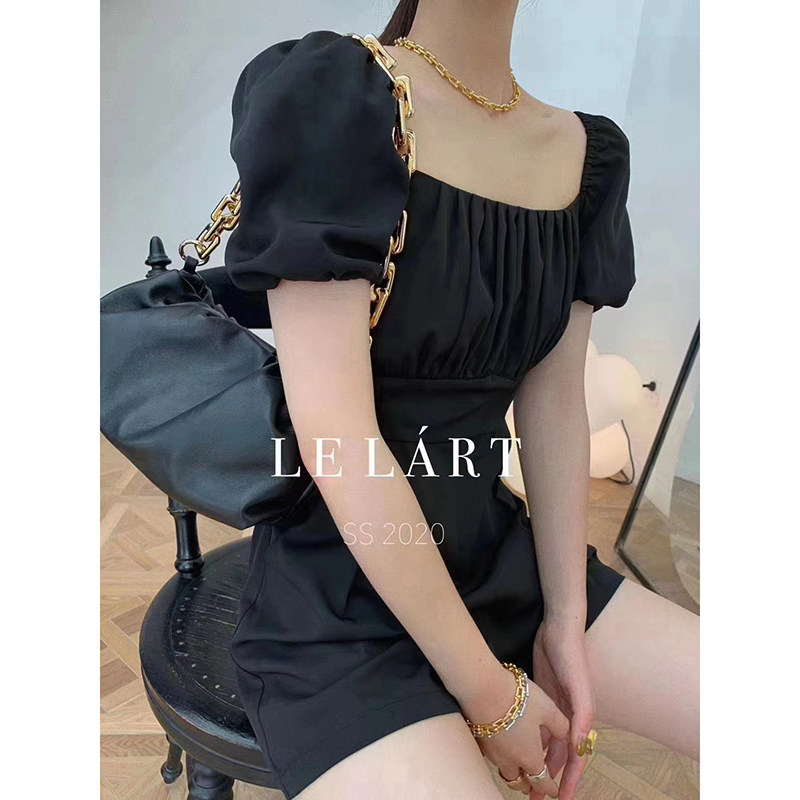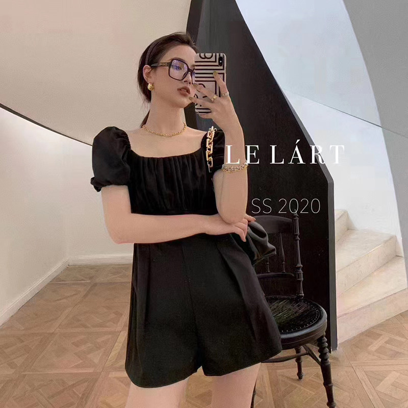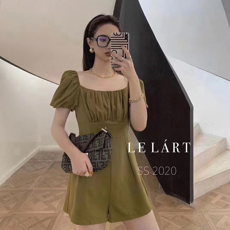 2022 square collar French style pleated waist jumpsuit women's summer foreign bubble sleeve casual wide-leg jumpsuit shorts