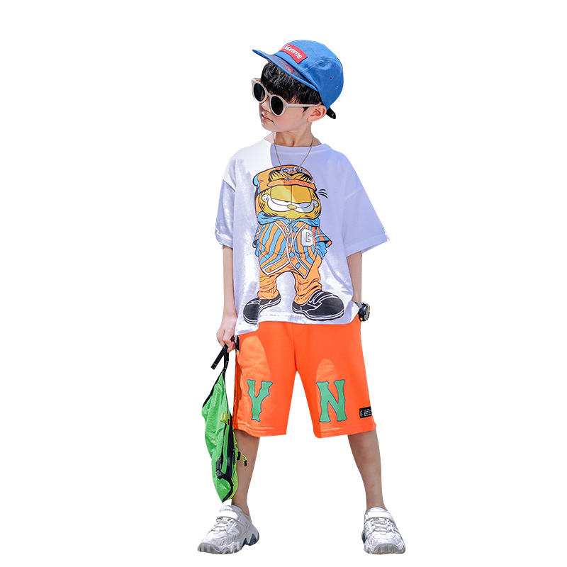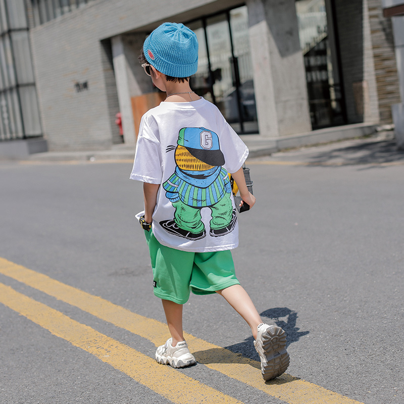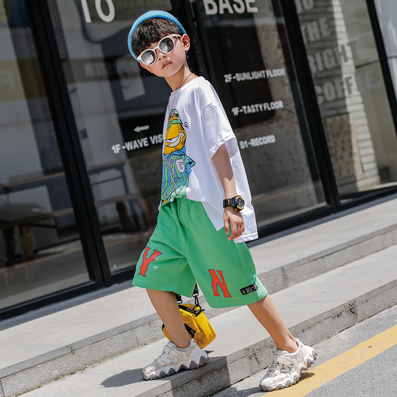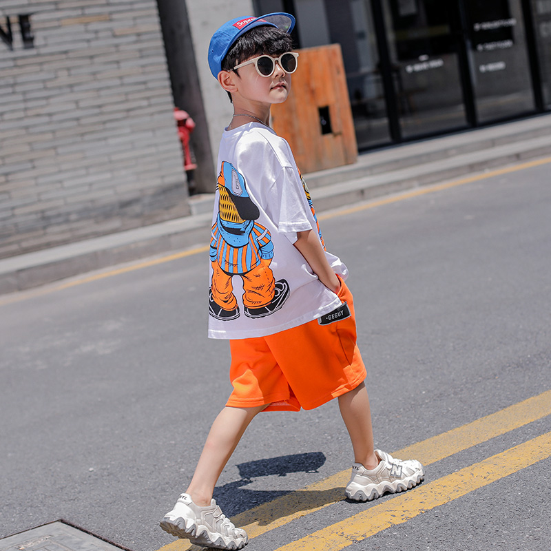 Boys' summer suits 2021 new trendy net red handsome children's boys' summer short-sleeved shorts two-piece suit