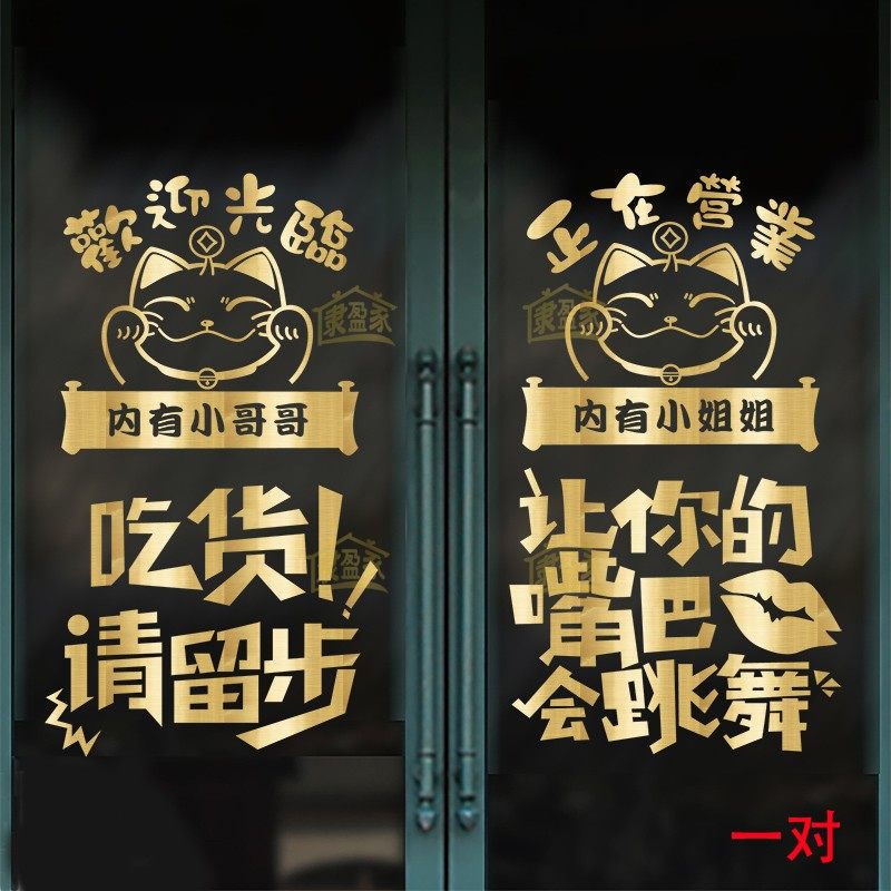 Creative Catering Shop Stickers Hot Pot Barbecue Hemp Hot Grilled Fish Roast Meat Shop Ramen Shop Window Glass Decoration Applique