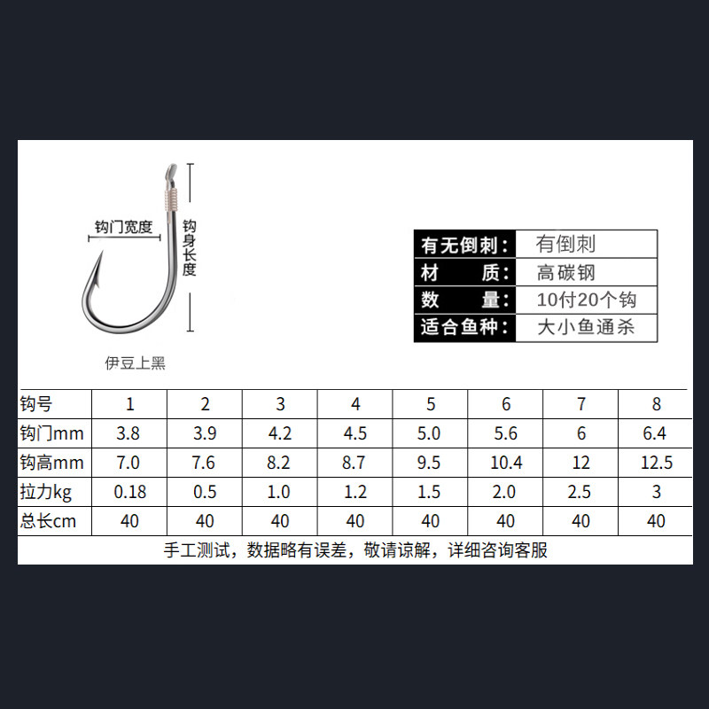 Izu Black 1# Hook with Spines 0.6 Lines Izu Black 1# Hooks with Spines 0.8 Lines Izu Black 8# Hooks with Thorns 2.5 Lines Izu Black 2# Hooks with Thorns 0.8 Lines Izu Black 2# Hooks with Thorns 1.0 Lines Izu Black 3# Hooks with Spines 0.8 Lines Izu Black 3# Hooks with Spines 1.0 Lines Izu Black 3# Hooks with Thorns 1.2 Lines Izu Black 4# Hooks with Thorns 0.8 Lines Izu Black 4# Hooks with Thorns 1.0 Lines Izu Black 4# Hooks with Thorns 1.2 Lines Izu Black 4# Hooks with Thorns 1.5 Lines Izu Black 5# Hooks with Thorns 1.0 Lines Izu Black 5# #钩有刺1.2 Line Izu Black 5# Hook with Spines 1.5 Lines Izu Black 6# Hook with Thorns 1.2 Lines Izu Black 6# Hooks with Thorns 1.5 Lines Izu Black 6# Hooks with Thorns 2.0 Lines Izu Black 5# Hooks with Thorns 2.0 Lines Izu Black 7# Hooks with Spines 2.5 Lines Izu Black 2# Hooks with Thorns 0.6 Lines Izu Black 8# Hooks with Thorns 2.0 Lines Izu Black 8# Hooks with Thorns 3.0 Lines