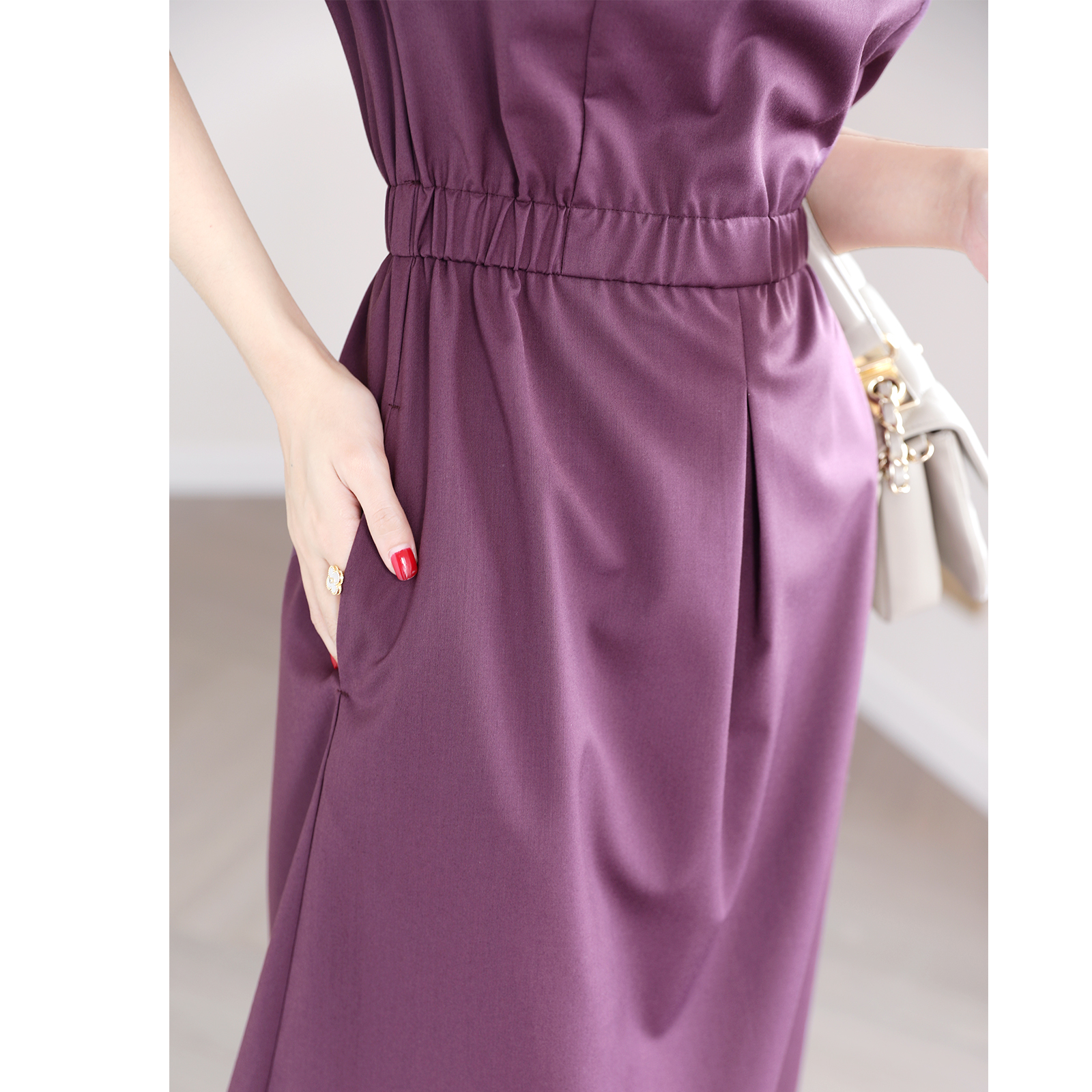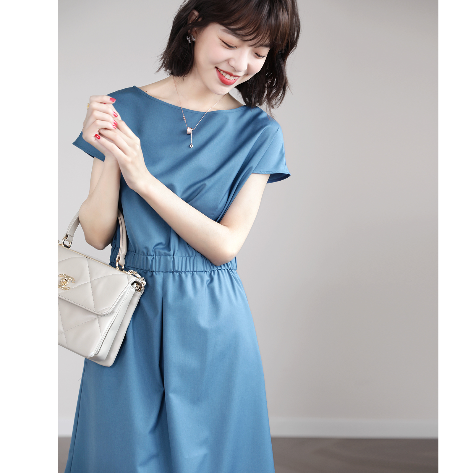 Exquisite skirts that make you“lazy”on commuting days are simple and generous with a waist solid color mid-length dress