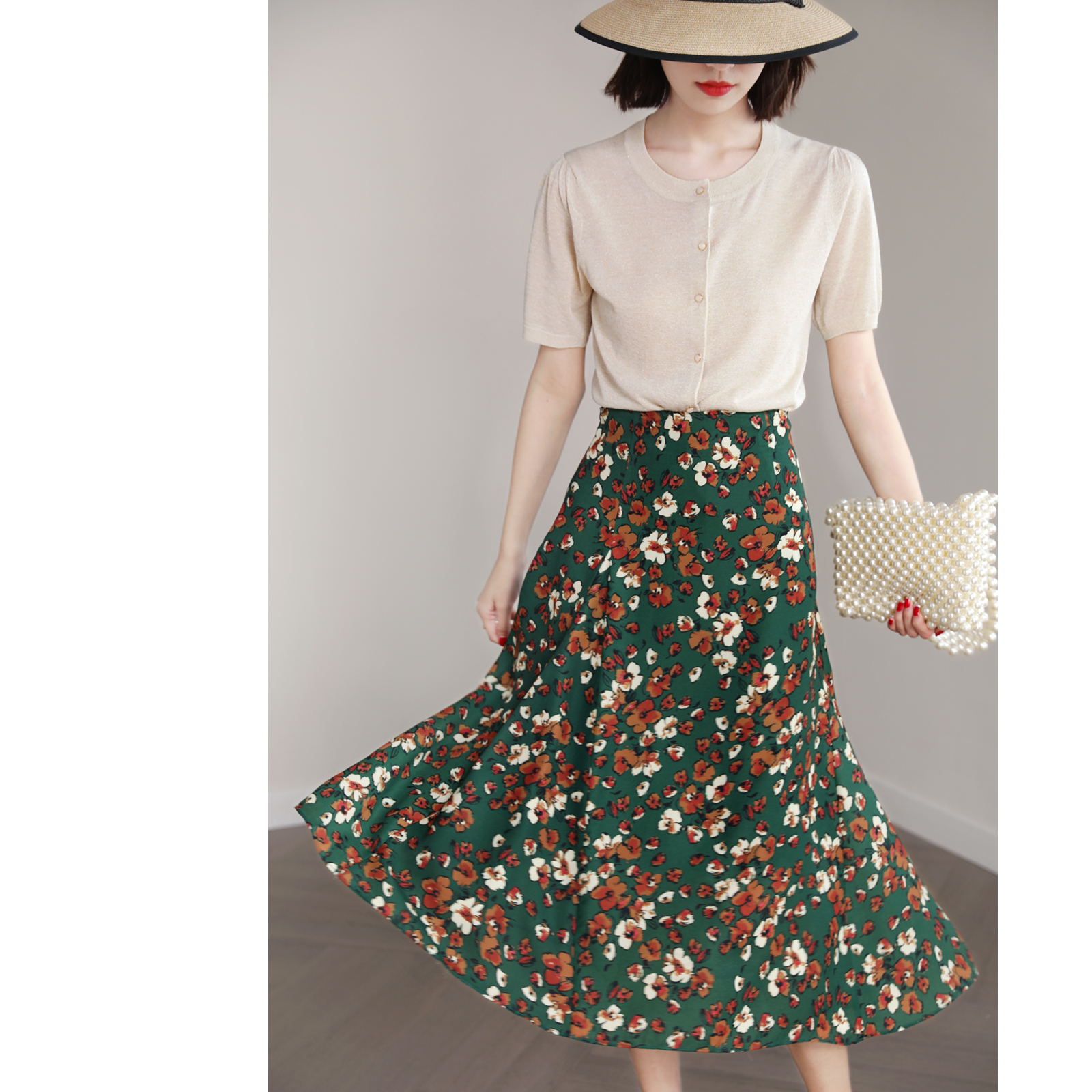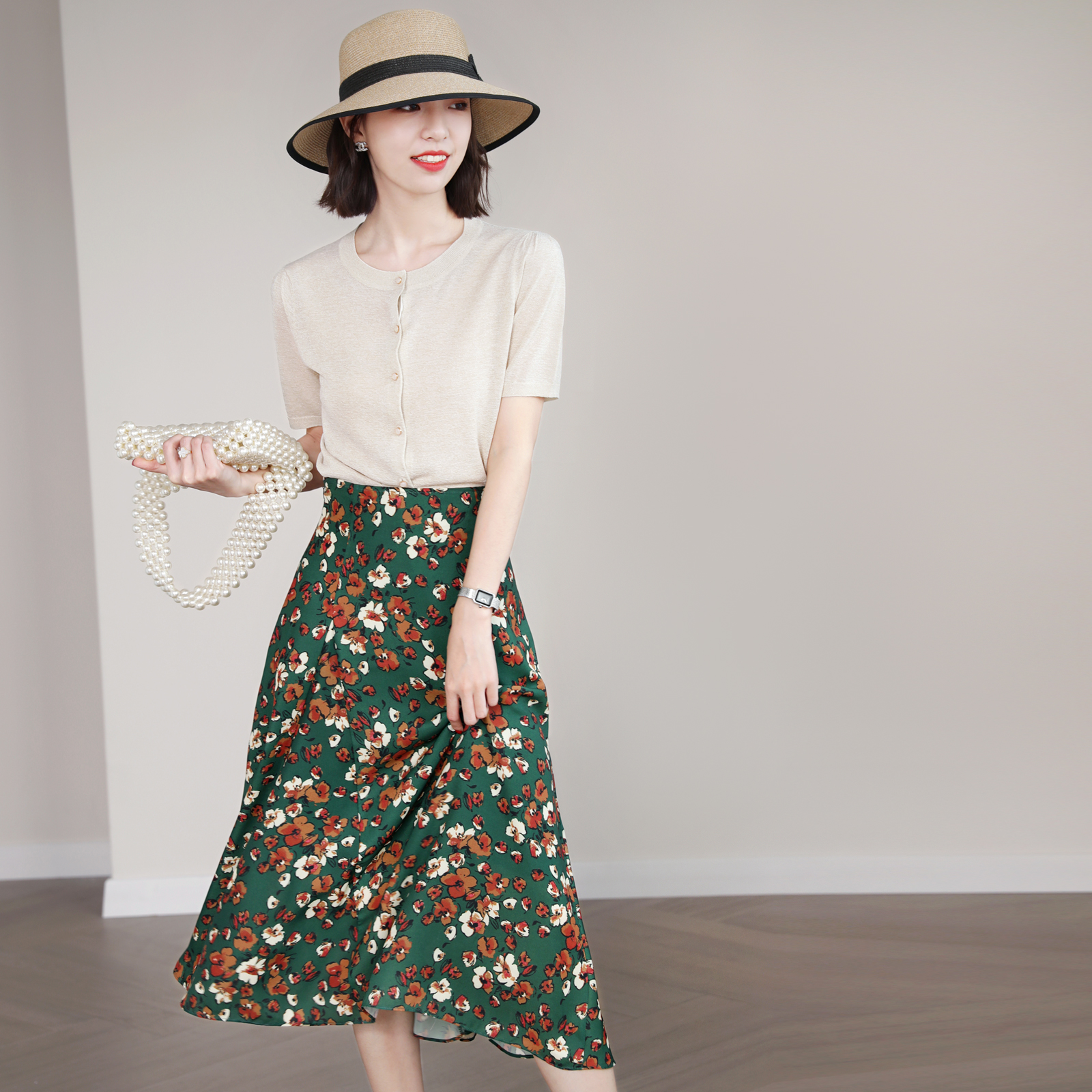 A long version of printed half-body dress in a really slim A version with a slightly intoxicating French style romance