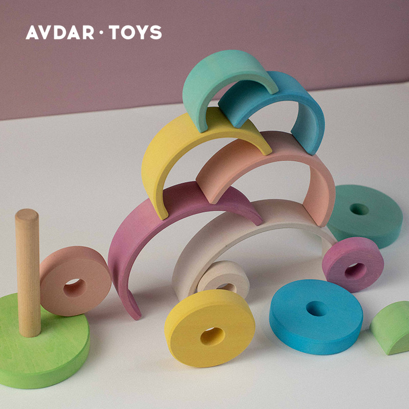 AVDAR Jenga Le building blocks children's puzzle rainbow tower ferrule infant early education 1-2 years old baby toy solid wood