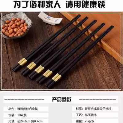 10 pairs of high-grade anti-mildew alloy chopsticks household non-slip paint-free high temperature resistance non-deformation hotel cutlery set