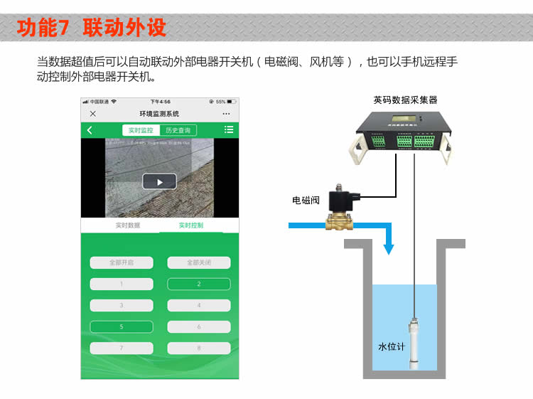 Pool water level data mining alarm linkage switch mobile phone remote control HD film surveillance camera