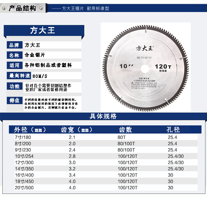 Fang Dawang standard grade aluminum alloy 120 tooth circular saw professional grade 10 inch 255 cutting piece 7 inch sawing machine 355