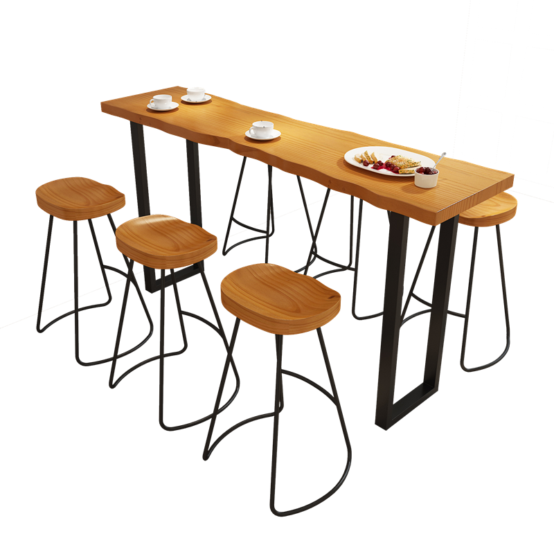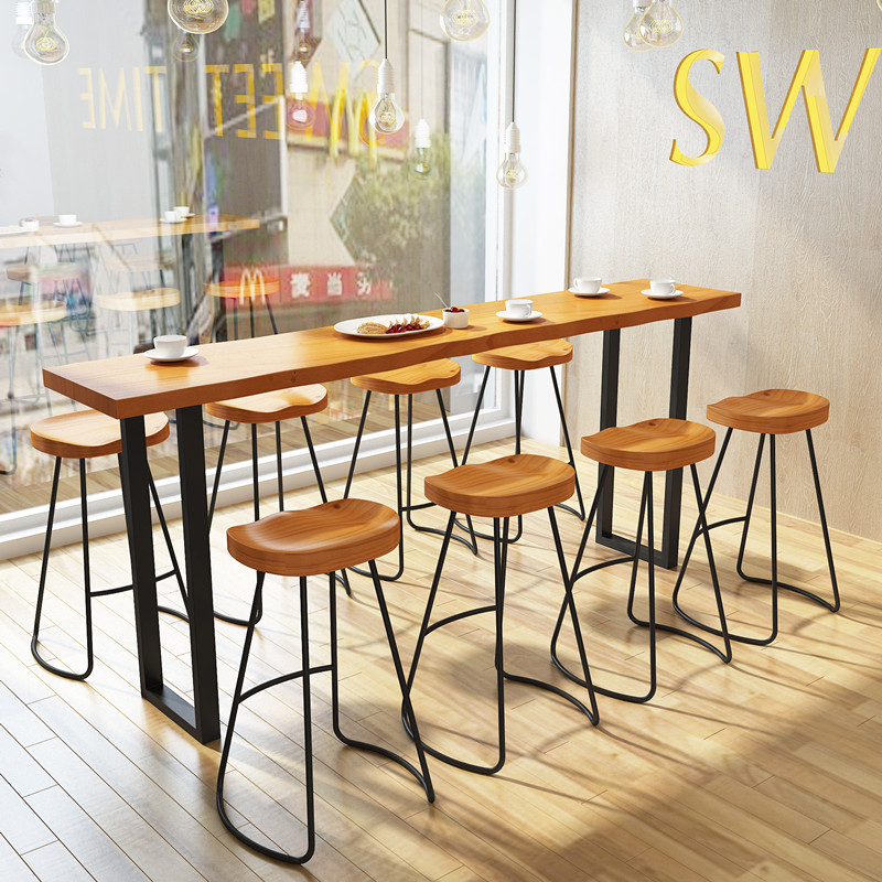 American whole board original solid wood bar table close to wall Iron art strip Bar table Home Milk Tea Shop High Foot Table And Chairs Combination