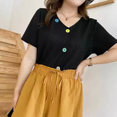 Cai Dobao large size women's women's summer 2021 new V-collar thin foreign Pie T-shirt short sleeve shirt