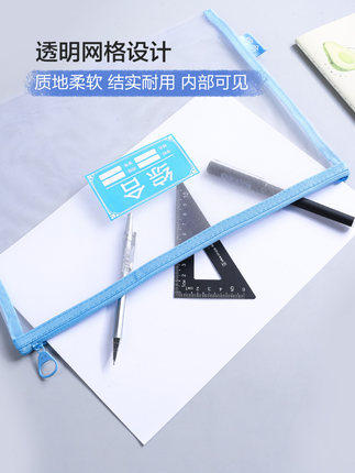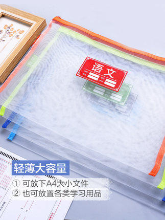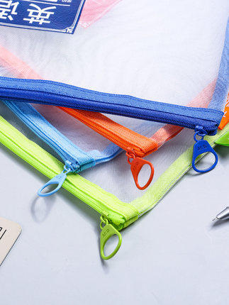 Morning light stationery subject classification mesh zipper bag large capacity transparent mesh bag subject paper storage bag 4 sets ADMN4096