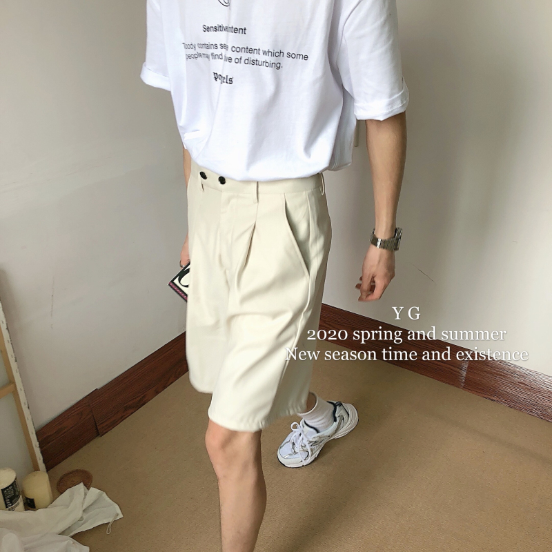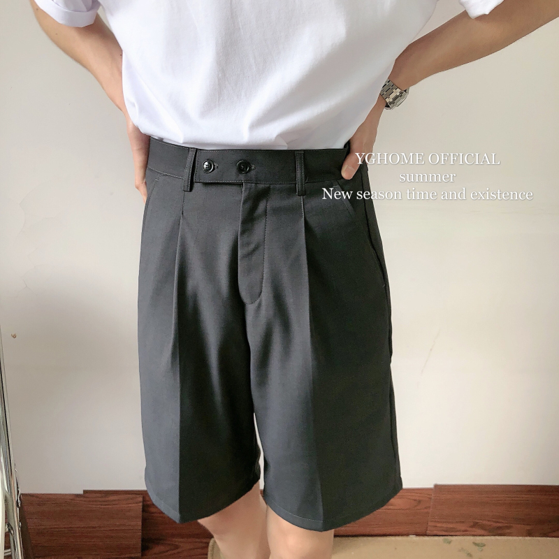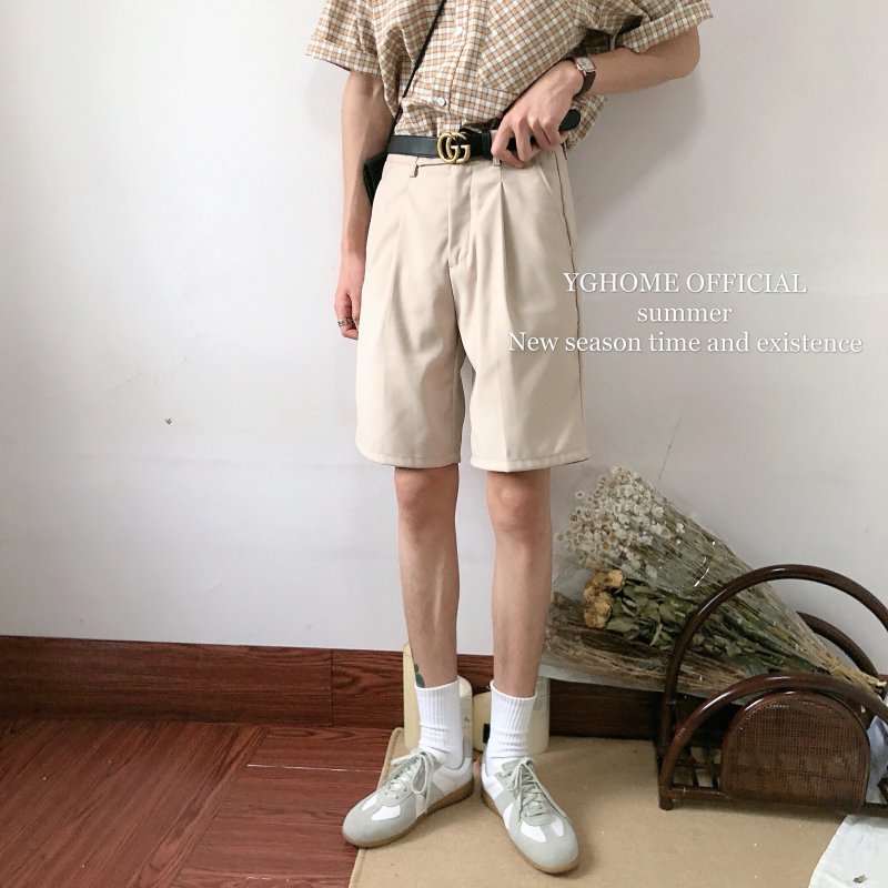 yghome shorts men's summer Korean version straight loose casual short suit pants ins tide brand Hong Kong style all-match five-point pants