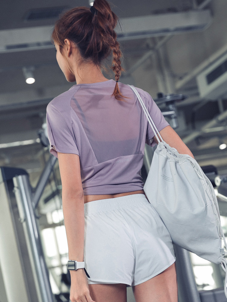 Net Red Fitness Suit Jacket Woman Loose Speed Dry T-shirt Sport Short Sleeve Mesh Yarn Hooded Sweatshirt Sexy Badminton Summer Thin
