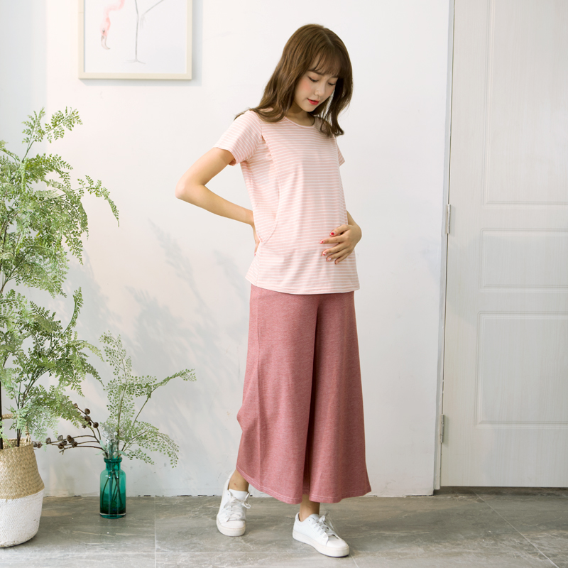 Ultra-thin beige green striped empty top Summer beige pinstripe dome Spring and autumn baby high waist colored cotton belly protection trousers B blue ruffled short-sleeved top Thin pink ruffled short-sleeved top Thin white