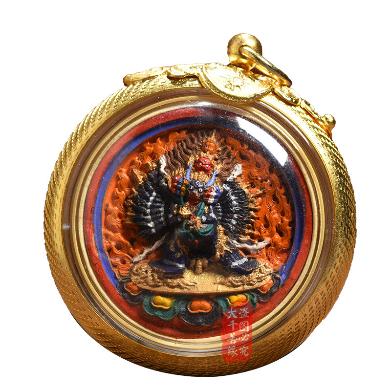 Tibetan Tibetan Tantric Great Vide Vajradhara Little Buddha Statue Rub Painted Portable Gawu Box Amulet Necklace Pendant