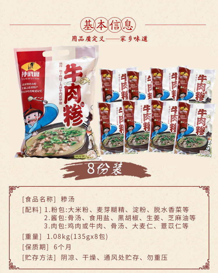 Linyi grits soup Beef grits sa convenient instant breakfast Lean meat porridge Chicken grits 135gx8 Linyi specialty Sun Wu feast