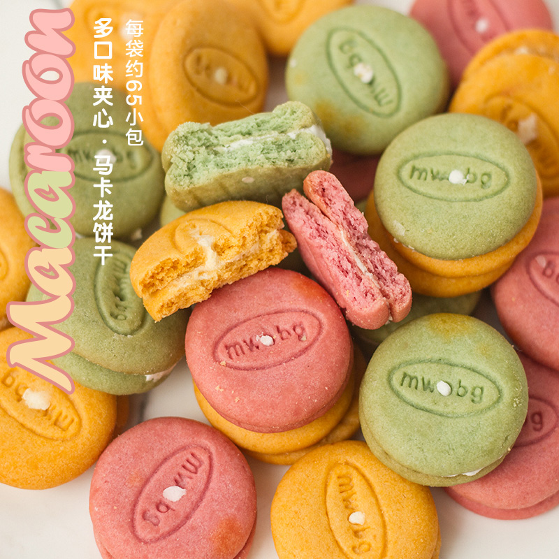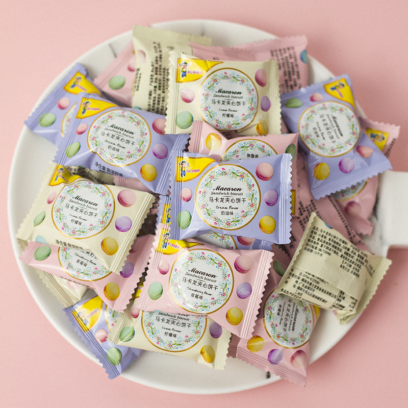 Net red macaron cookie strawberry flavor sandwich small cookie multi-flavor kindergarten share snack small package marriage
