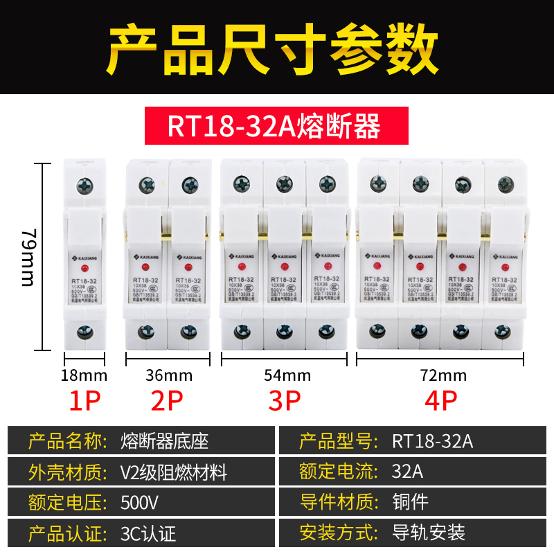 Fuse base fuse holder RT18-32X rail style with lamp 1P2P Low pressure plug-in melt core 10 * 38